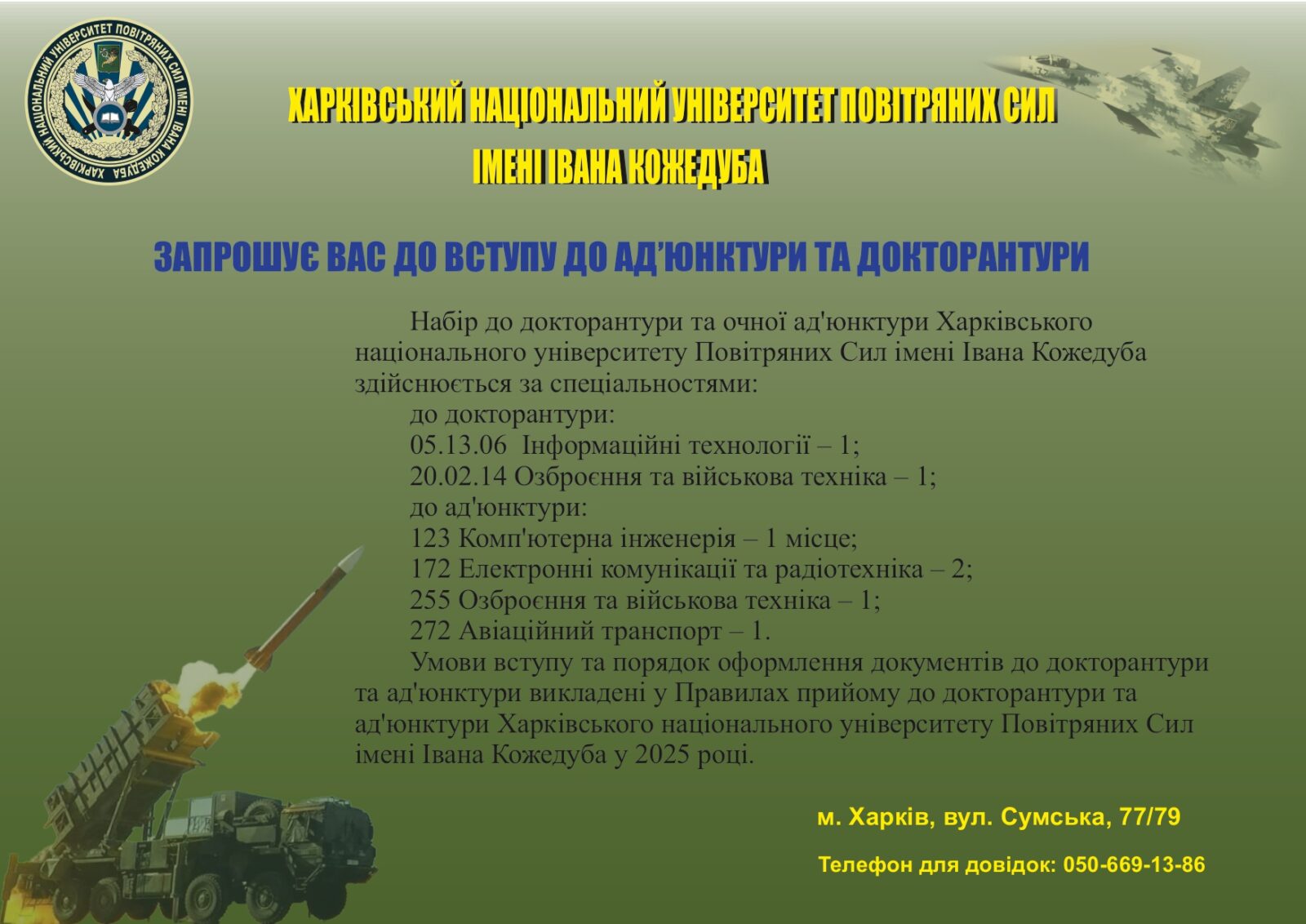 Kharkiv National University of Air Forces named after Ivan Kozhedub is a higher military educational institution of the Armed Forces of Ukraine, which over its long history has proven itself to be a leading university in military education and training. Kharkiv National University of Air Forces has IV level accreditation. For decades, the university has been developing world-class science, conducting fundamental and applied scientific research, and training qualified military personnel and civilian specialists.