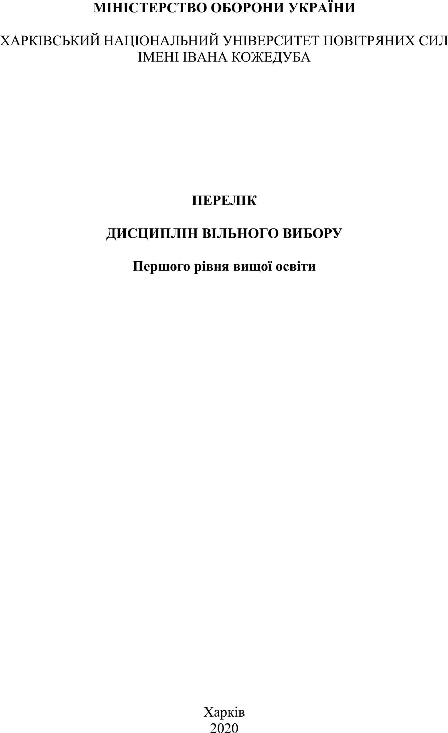 Перелік дисциплін вільного вибору бакалаври
