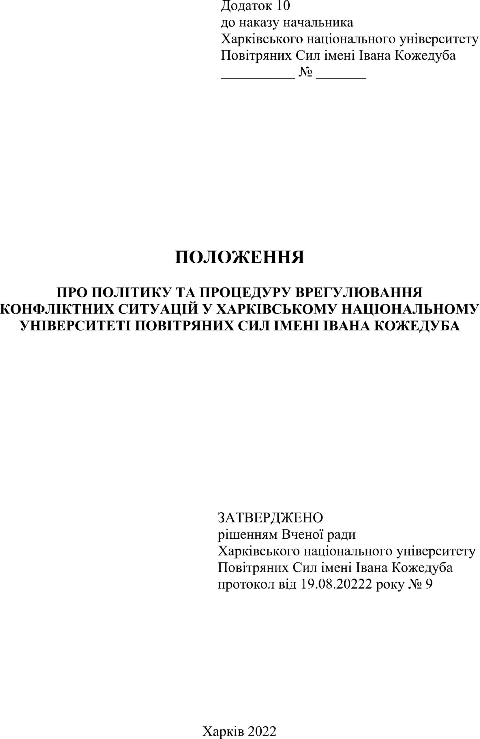 університеті Повітряних Сил імені Івана Кожедуба (далі — Університет)
