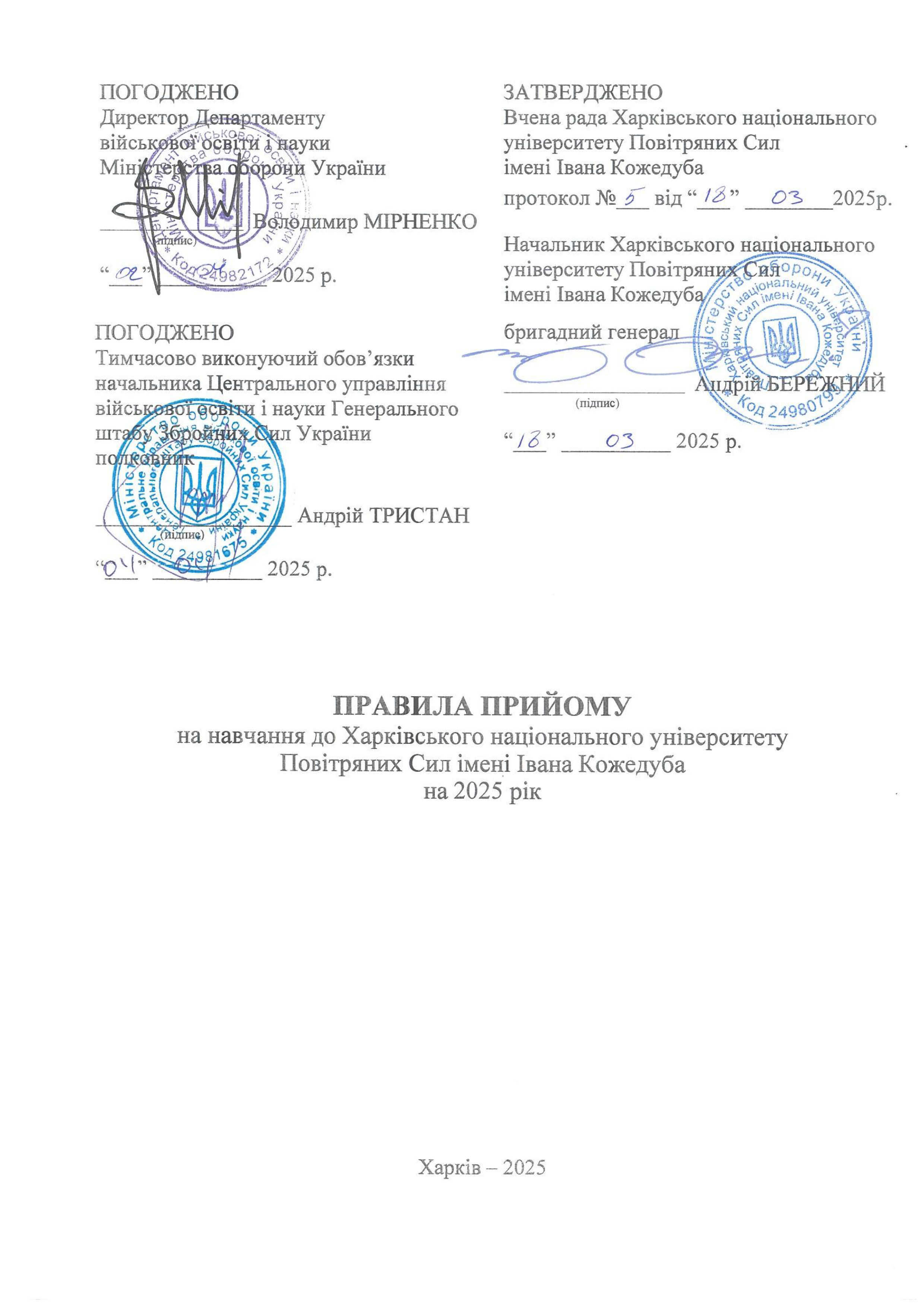 Повітряних Сил імені Івана Кожедуба (далі – Правила прийому) розроблені