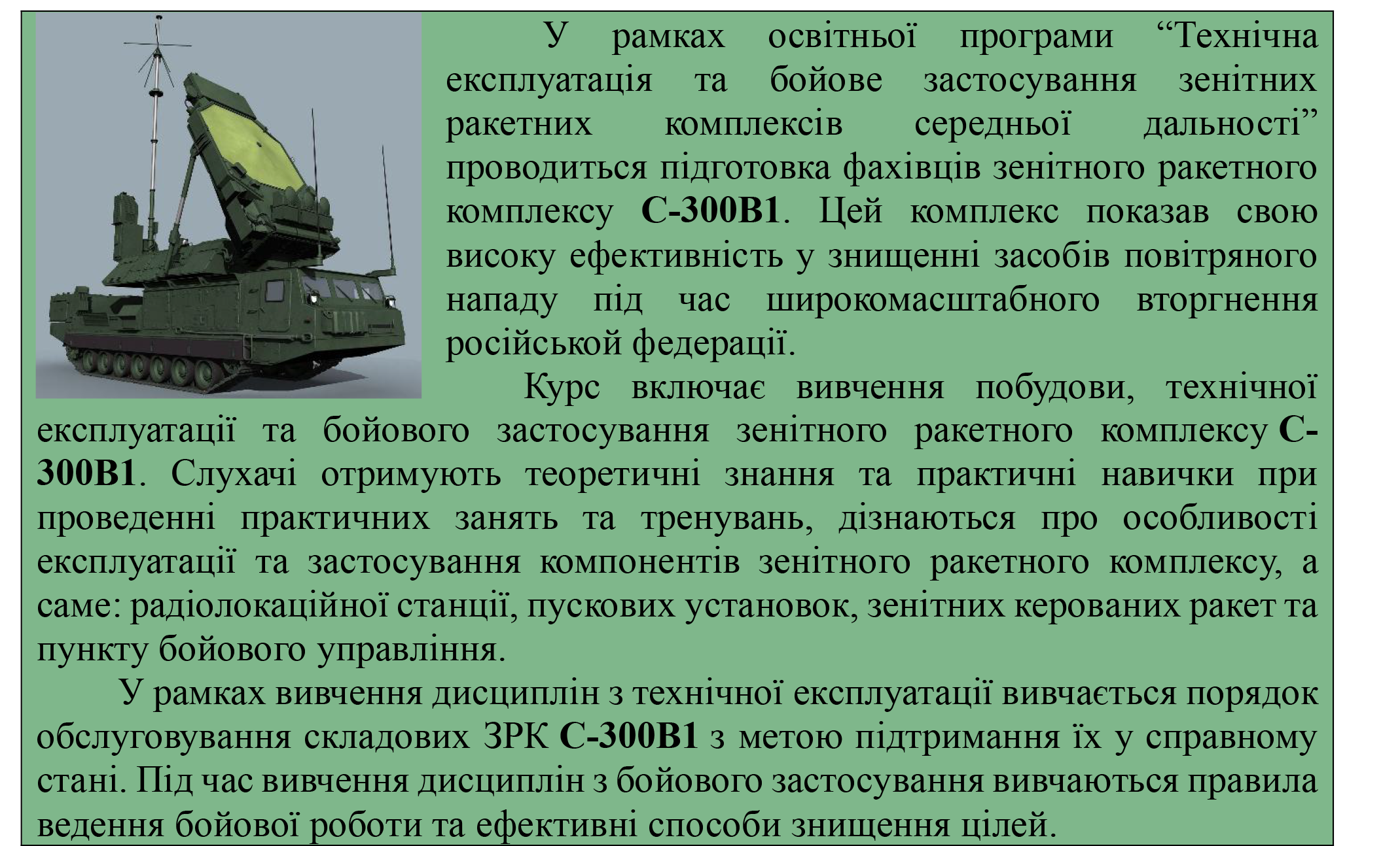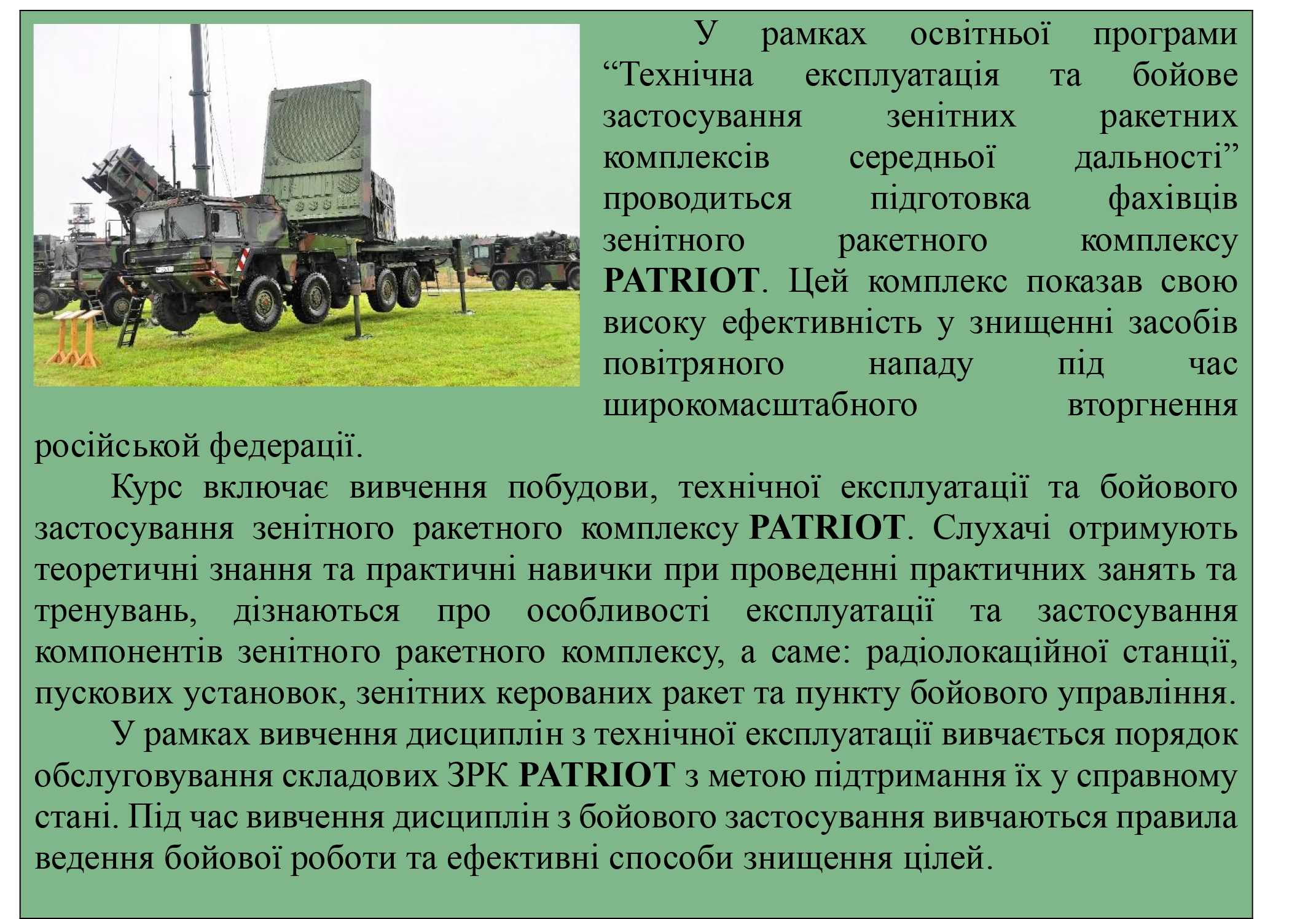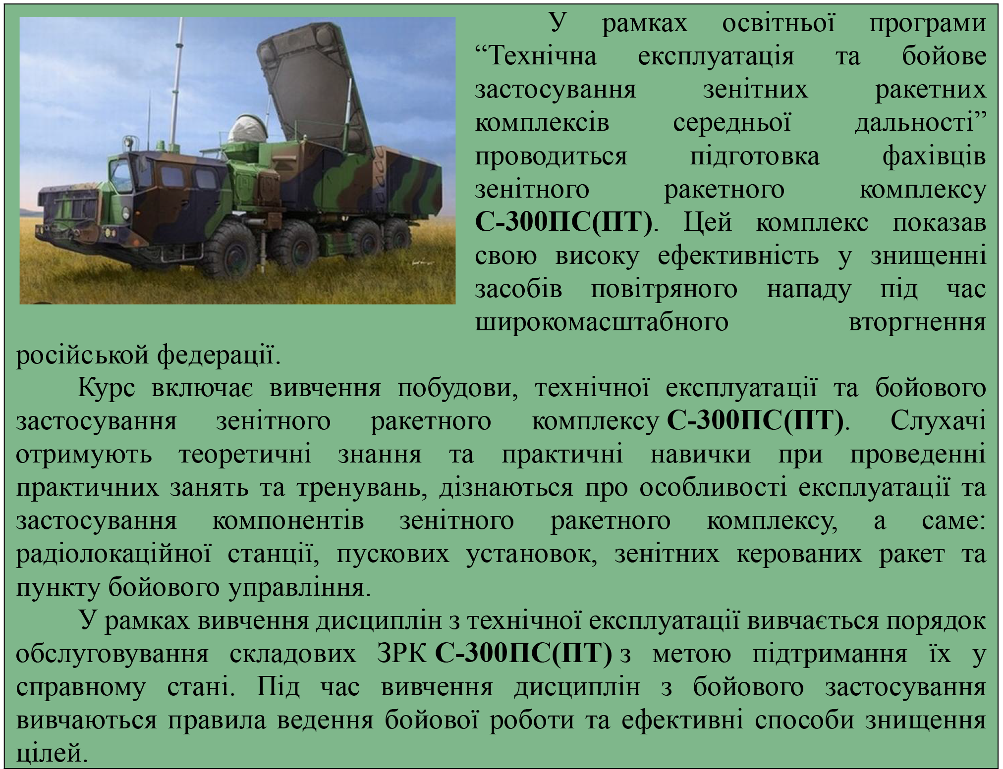 “Технічна експлуатація та бойове застосування зенітних ракетних комплексів середньої дальності” фахівці зенітного ракетного комплексу