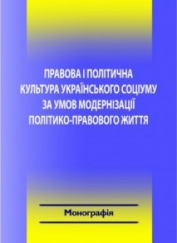 Монографію присвячено дослідженню правової і політичної культури українського соціуму за умов модернізації політико-правового життя, формуванню правової компетентності особистості, толерантності і консенсуальним практикам в ціннісній структурі правової культури суспільства, ідеологічним імперативам політичної культури у контексті формування соціальної ідентичності, впливу «Революції гідності» на політико-правове поле України. Для студентів, аспірантів, викладачів вищих навчальних закладів, працівни- ків органів державного управління та місцевого самоврядування.
